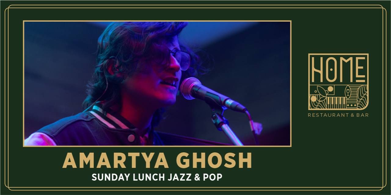 A relaxed Sunday lunch experience with live music by Amartya Ghosh, featuring singer-songwriter warmth and pop melodies, set in an easy, unhurried ambience perfect for leisurely afternoons.
